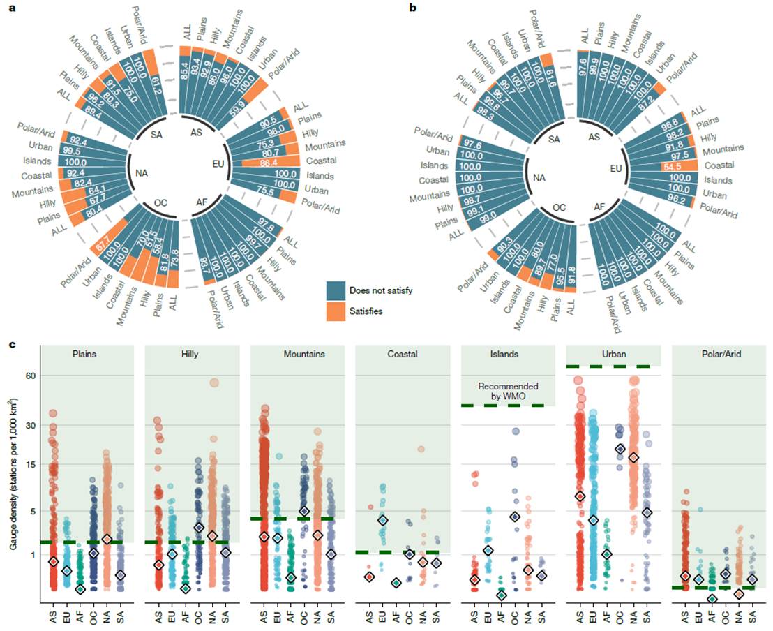 在全球气候变化背景下,降水观测是认识水循环过程、评估水资源安全及应对极端气候风险的基础支撑。然而,全球降水观测网络的覆盖水平与布局合理性长期缺乏系统评估。依托青海师范大学与北京师范大学在水文气象与地理科学领域的长期合作基础,研究团队系统整合了1900—2022年全球约22万个逐日降水观测台站数据,其中约4万个为满足长期稳定观测条件的“长时序”站点,并在全球尺度上首次量化评估了降水观测网络的覆盖状况。研究表明,目前全球仅约13.4%的陆地面积达到世界气象组织推荐的最低站点密度标准,而在仅考虑长时序站点时,这一比例进一步下降至1.9%,凸显了全球降水观测能力存在显著短板。