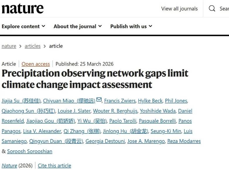 近日,青海师范大学地理科学学院与北京师范大学地理科学学部开展的深度合作研究取得重要进展。由北京师范大学缪驰远教授牵头、双方联合开展的研究成果以“Precipitation Observing Network Gaps Limit Climate Change Impact Assessment”为题,发表于国际顶级学术期刊《Nature》。青海师范大学地理科学学院青年教师张棋在该研究中发挥了重要作用。